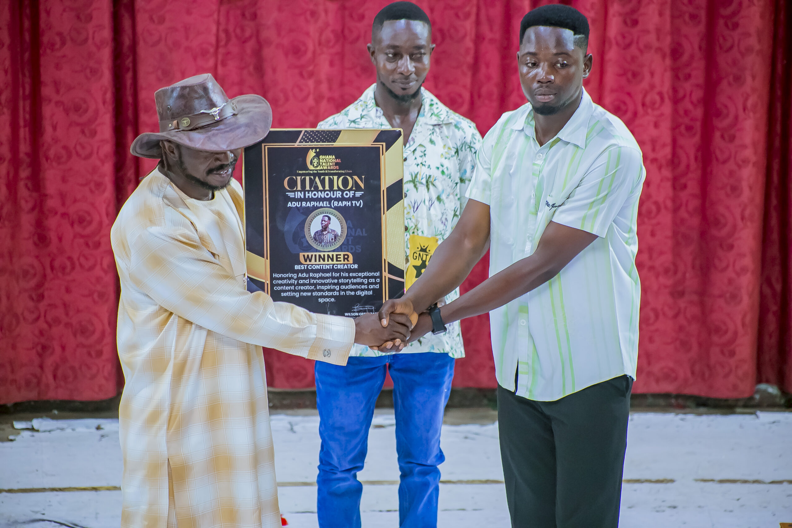 From a small community in Kwahu to building a recognized media brand, Adu Raphael’s journey is far from over but it is already one worth telling. He has also gained significant recognition for his efforts including winning Best Promoter of the Year 2024 in Kwahu Eastern Region, Best Broadcast Journalist 2024 at the Ghana National Talent Awards, and Best Content Creator 2025 also at the Ghana National Talent Awards. He now serves as a Godwin Ambassador for the Federation of African Youth Development and the Ghana National Talent Awards.